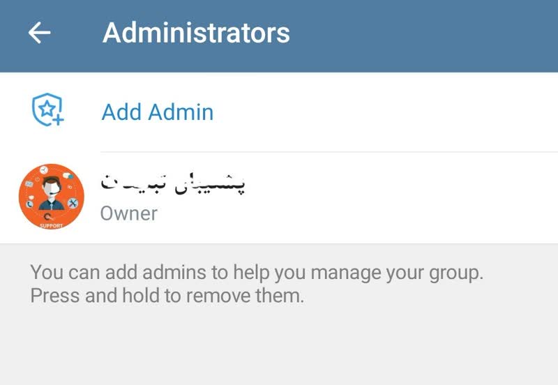 ابتدا وارد تنظیمات گروه تلگرام شده و قسمت Administrators را می زنید و در آن جا ادمین ها را مشاهده میکنید.